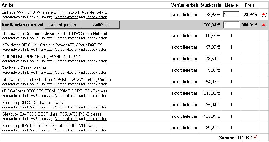 Macht zusammen ca. 1000 €. Teurer sollte es auch nicht werden.