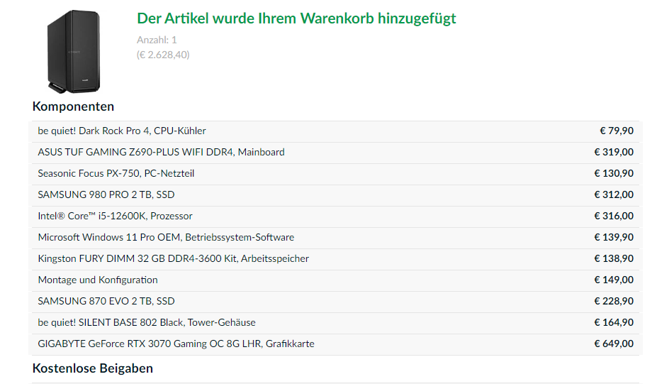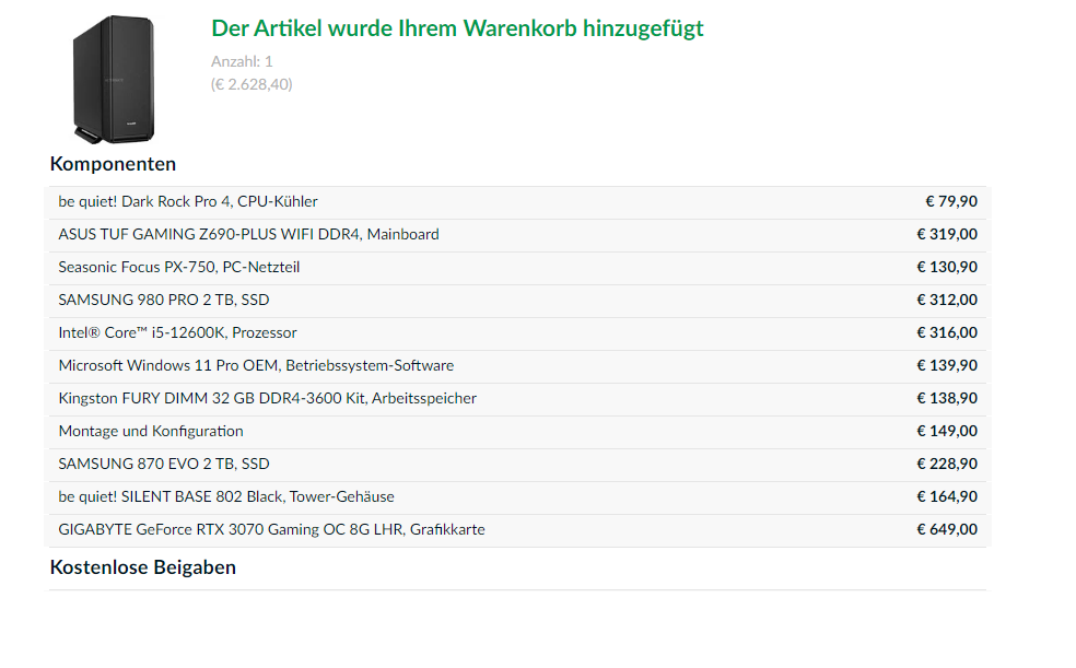 Unbedarft wie ich bin, habe ich mir mal im Alternate-Konfigurator meine "Wunschkonfig" zusammengestellt. Für Verbesserungen bin ich äußerst dankbar, da ich den neuen Rechenknecht auch wieder lange unverändert nutzen will.