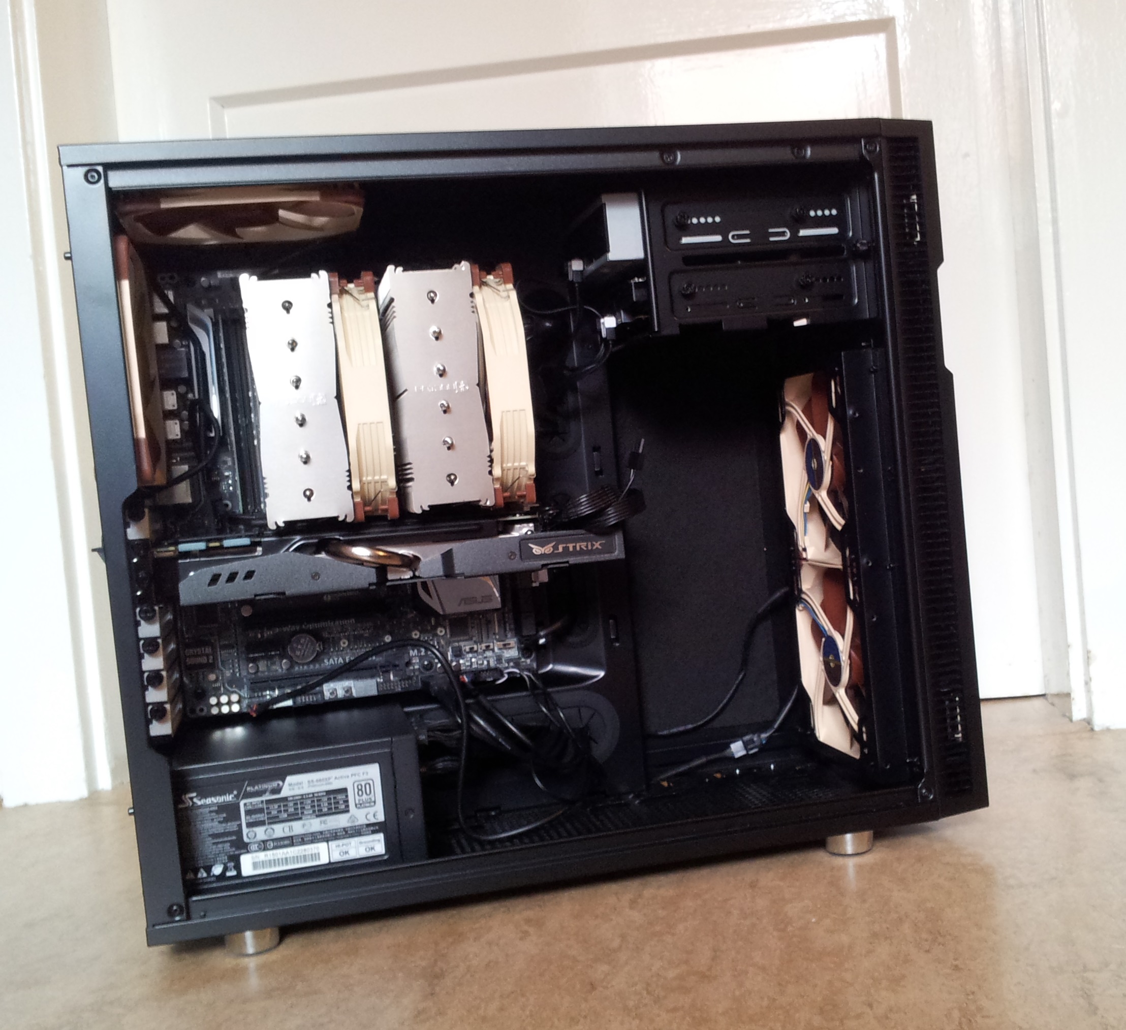 Grafikkarte: Die GTX980 ist hier als Platzhalter. Ich würde erstmal noch meine alte verwenden, bis evtl. eine auch im Desktop-Betrieb passive Variante der 980 Ti rauskommt oder der Preis der 980 auf einmal stark sinkt. Alternativ würde es auch etwas Vergleichbares von AMD tun, sofern sie nicht allzu laut ist, wenn sie mal nicht viel zu tun hat. Bis auf X-Plane spiele ich alles nur auf einem Monitor.