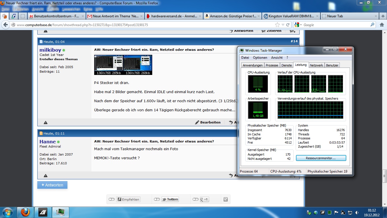 Ein zweites Netzteil oder einen 2ten Ram habe ich leider nicht.