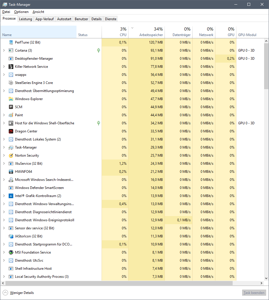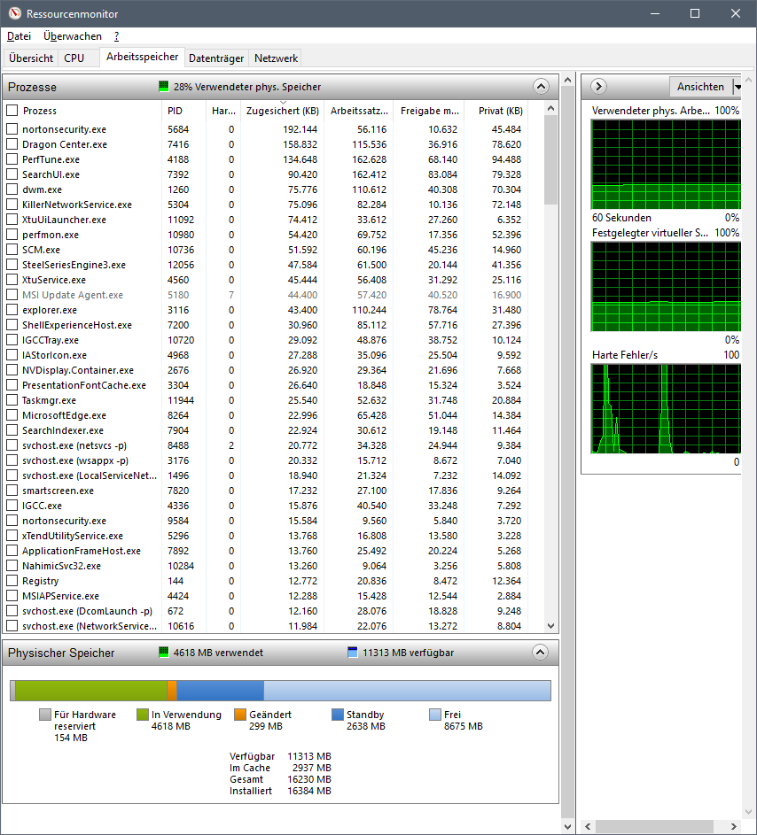 ich habe ein kleines Problem mit dem RAM meines neuen PCs. Und zwar verwendet Windows direkt beim Booten 5 GB RAM, ohne diese Belegung im Taskmanager oder Ressourcenmonitor anzuzeigen, denn die Prozesse die bei mir im Hintergrund laufen belegen nicht annähernd 5GB... der höchste Verbauch belegt Norton mit gerade mal 192MB RAM. Der PC wurde dabei erst frisch mit OEM Recovery Partition zurückgesetzt.