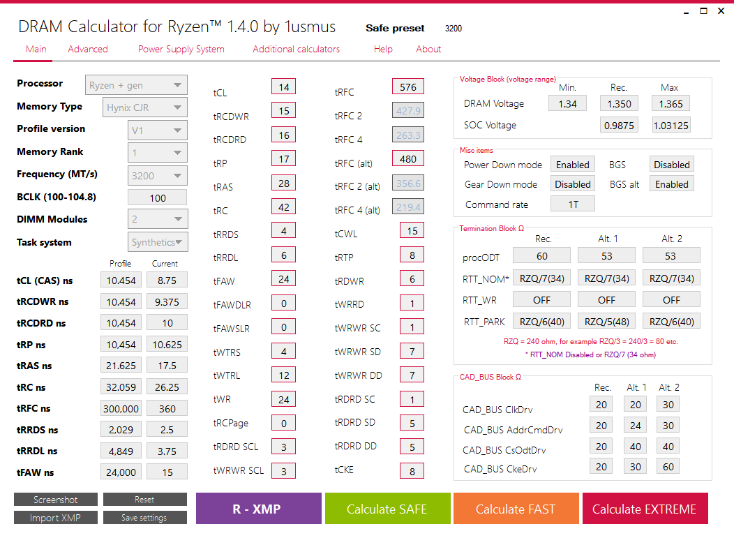 Dein RAM hat übrigens vermutlich hynix cjr Chips falls du manuell berechnen willst.