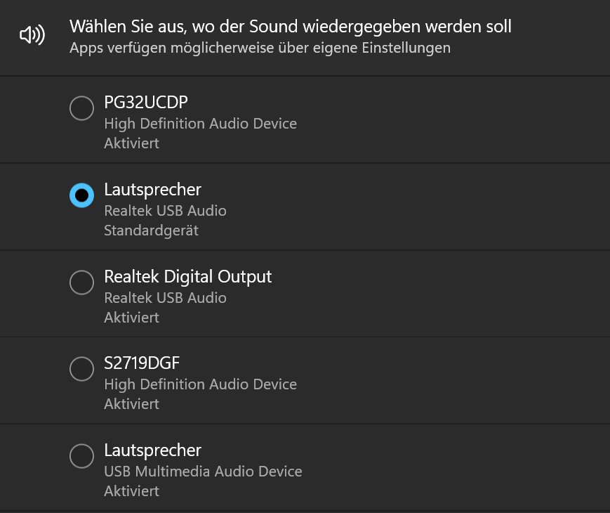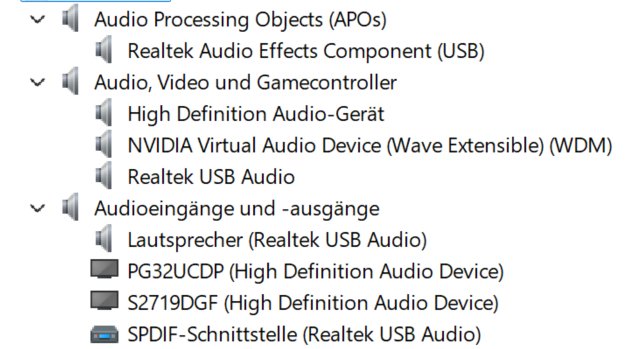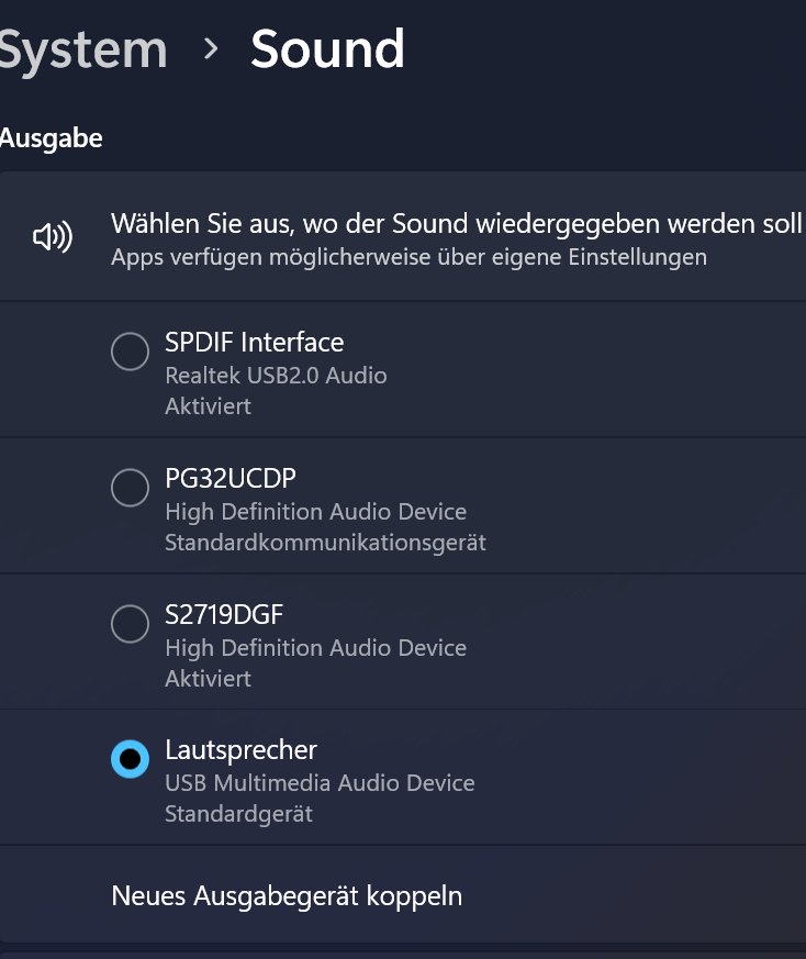 Kannst auch das Teufel mal per Klinke an den PG32UCDP anschließen und den dann als Wiedergabegerät auswählen - hab auch den Monitor und mache das genau so um die Lautsprecher mit der KVM-Funktion netzen zu können. Im Monitor-OSD muss der Audioausgang aktiviert sein. Insgesamt - mit dem Input aus dem Asus-Forum - scheint das ein Softwareproblem zu sein.