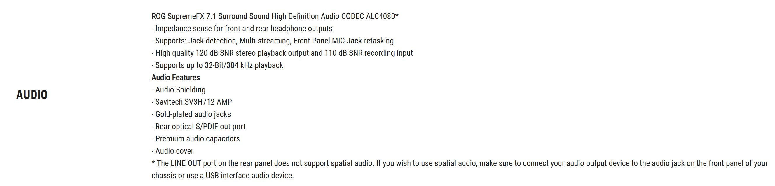 Guck mal auf dem Bild der Rear Line Output da steht was von does not suppoert Spatial Sound geht nur mit der Frontklinke? Was bedeutet das denn?