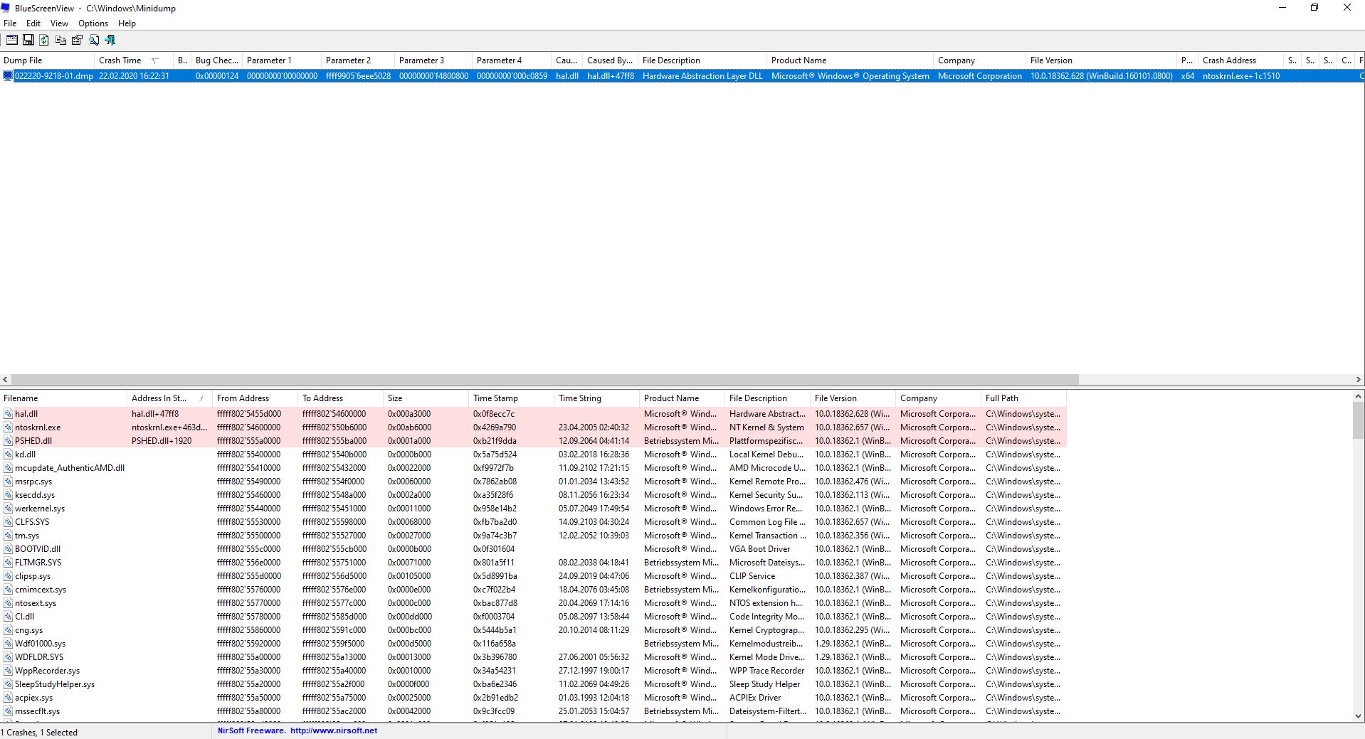Das erste mal gab es jetzt jedoch einen Bluescreen und den habe ich mal ausgelesen.