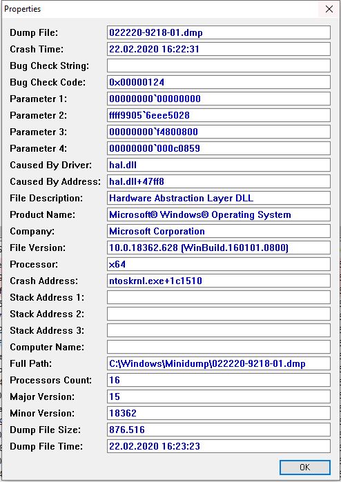 Full Path : C:\Windows\Minidump\021520-10109-01.dmp