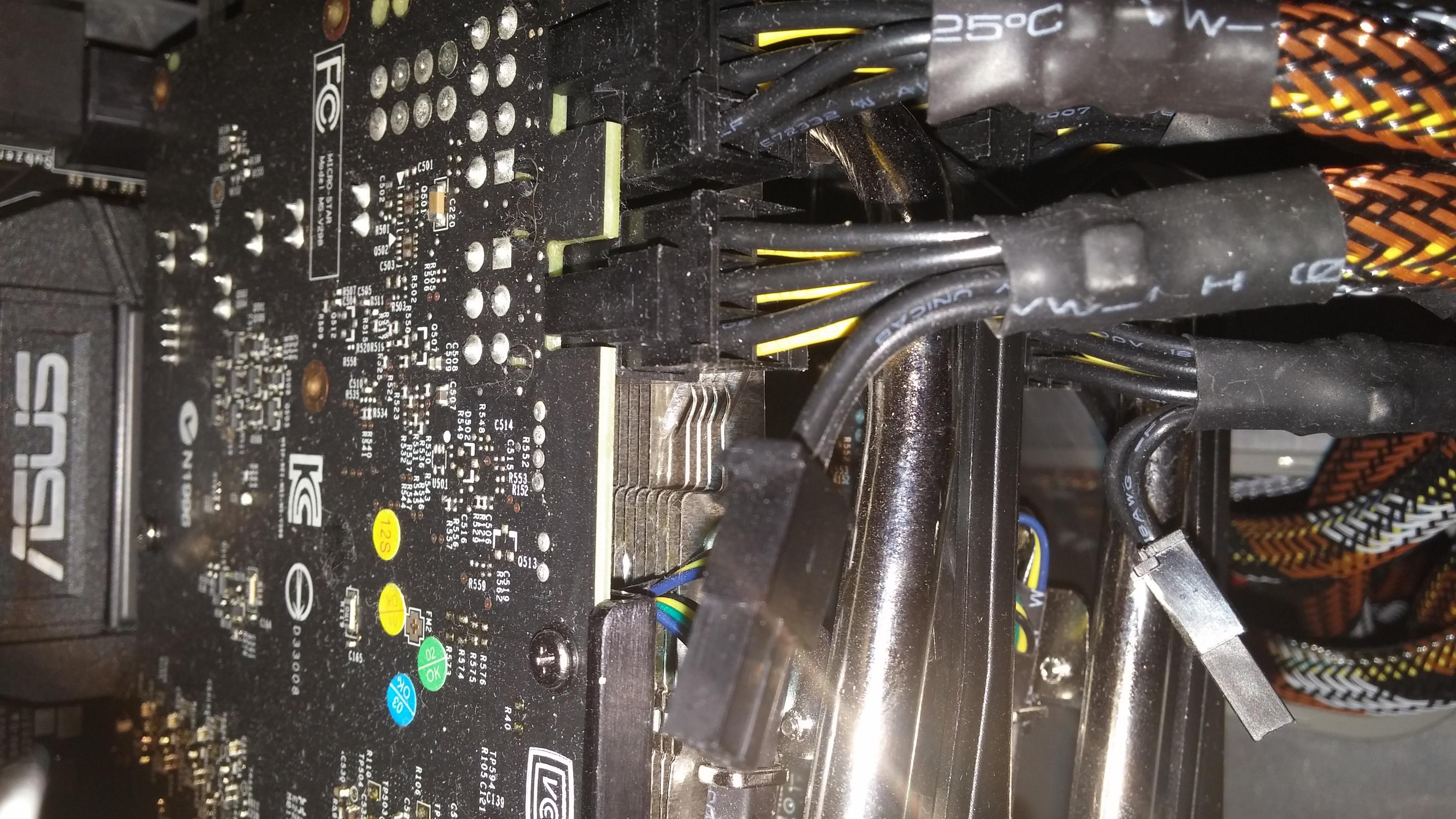 Das Teil, wo PSU drauf steht und du in der Graka gesteckt hast, kommt an das Netzteil. Und was hast Du für einen Stecker ins Netzteil gehauen?