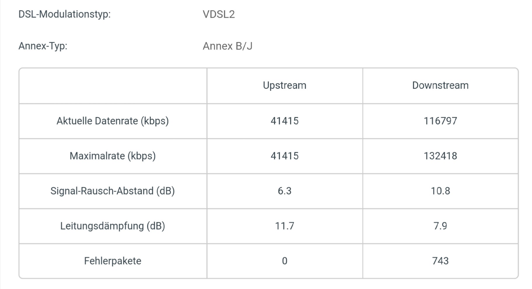 Diese Infos habe ich über meine VDSL Leitung: " VDSL2 17a-Vectoring / ITU-T G.993.5 / G.vector "