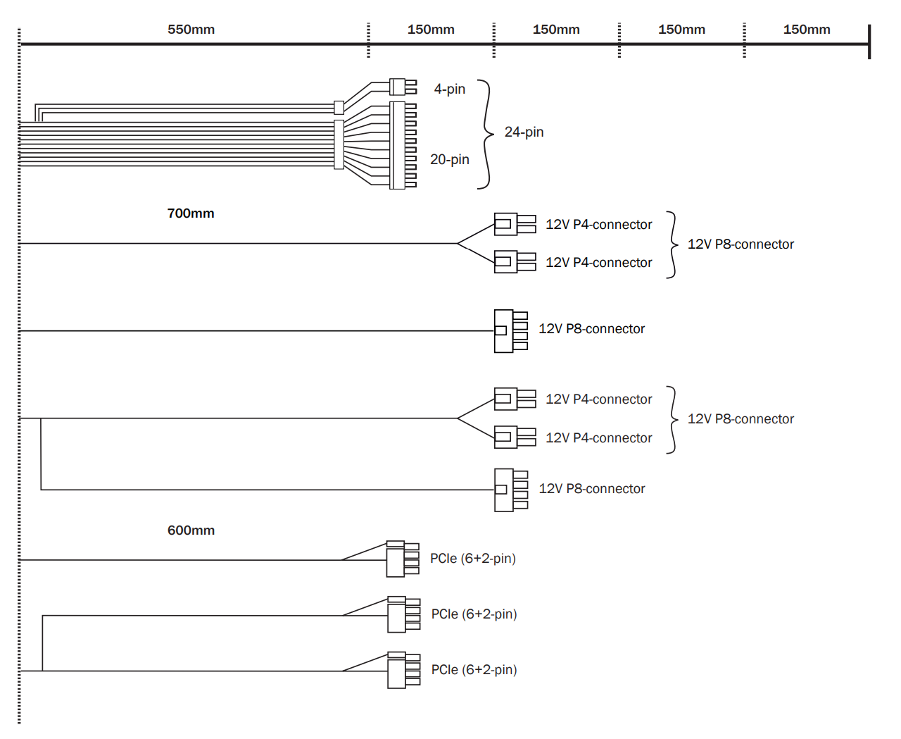 Das Problem wäre dann außerdem die Steckerverteilung (die Kabel kommen ja mit dem Netzteil), und das eine Kabel ist ja ein y Kabel von einer Rail auf 2x8pin, oder? Das ist ja dann noch dramatischer. Dann wären die 24A bzw 26A geshared auf die 2x8pin, und für das 6pin würden auch nur die hälfte gezogen werden von den 24/26A also 12/13A.