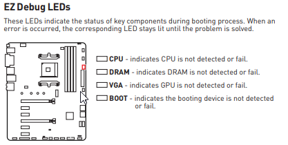 Leider bleiben alle Peripheriegeräte ohne Signal. Am Mainboard leucht kurz (~5sek) die Kontrollleuchte der CPU.