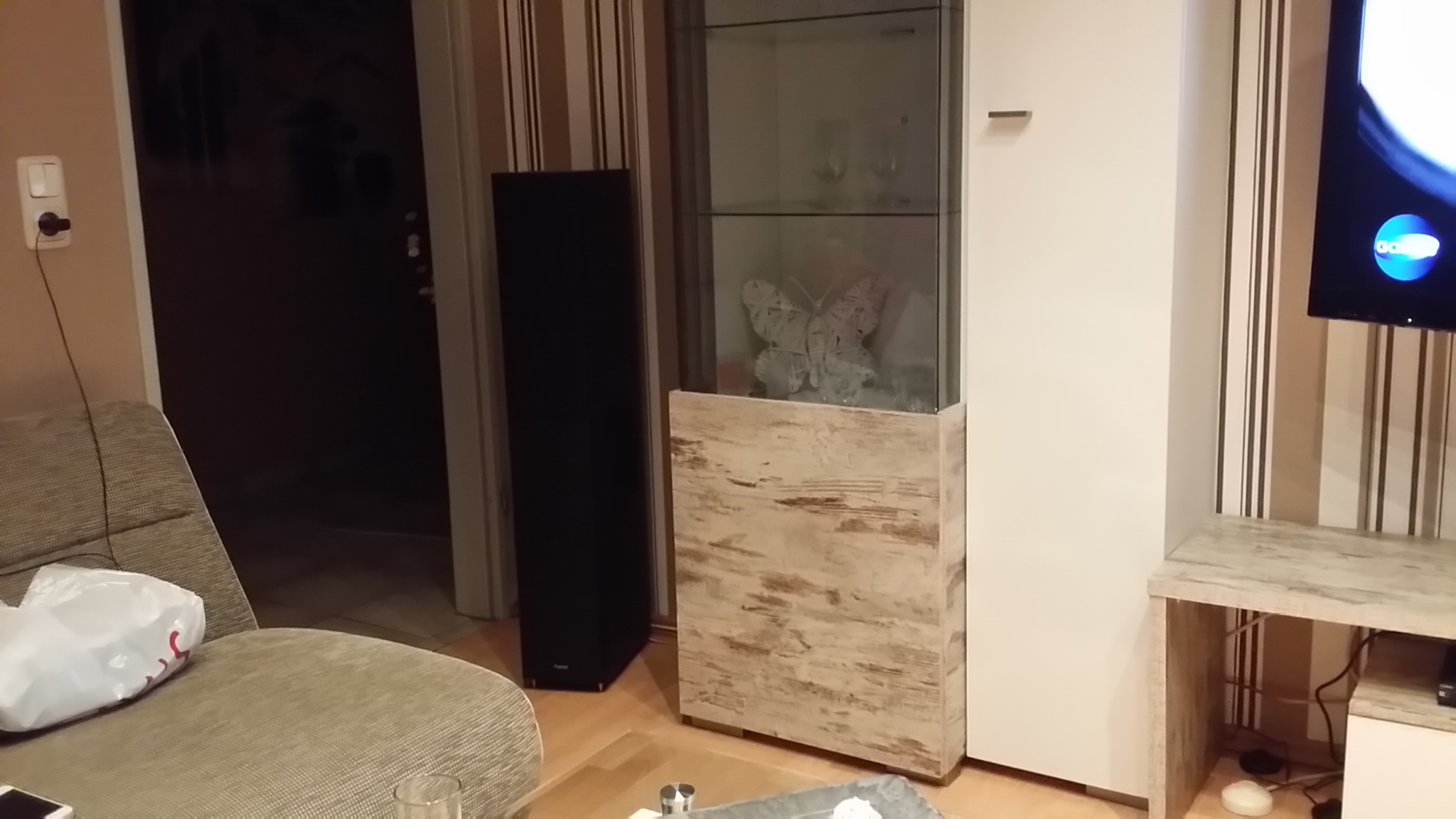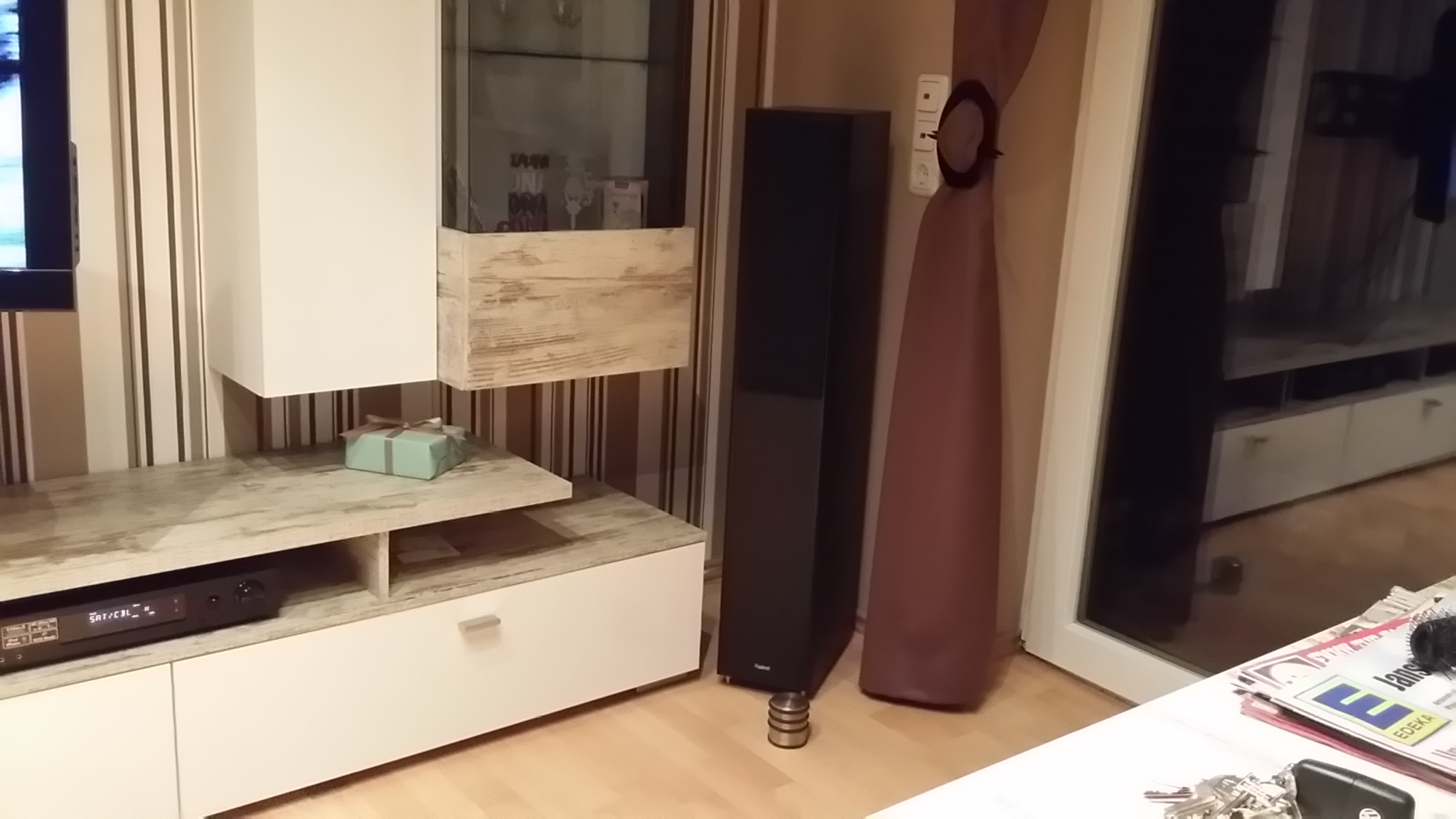soviel zu meiner aufstellung. ausgerichtet auf die couch in der ecke.