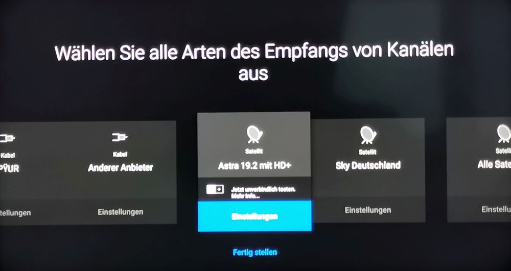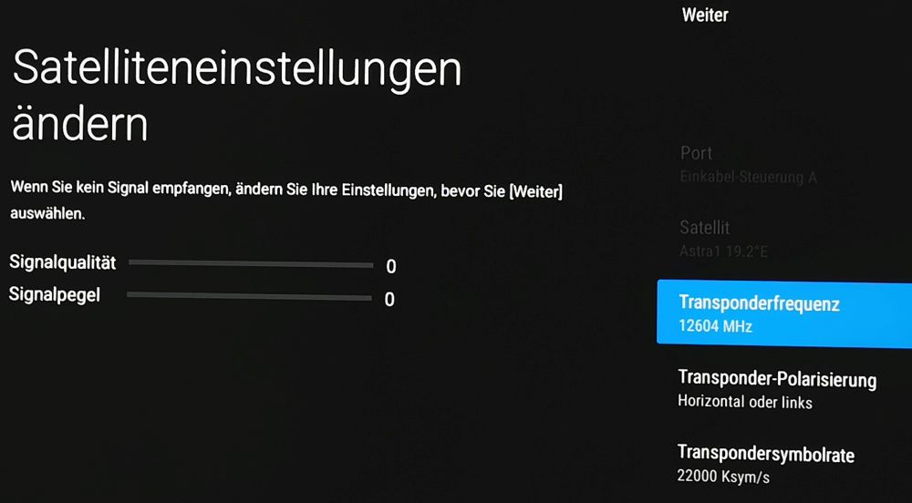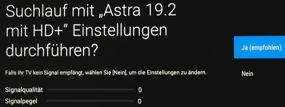 Jedenfalls habe ich das Problem, dass ich den Satellitenempfang (Astra 19.2) nicht eingerichtet bekomme. An derselben Buchse, am selben Kabel empfängt mein alter Samsung aus 2014 oder 2015 sofort ein Signal und startet den "rollierenden" Senderdurchlauf (kenne den Fachbegriff hier leider nicht). Sucht etliche Frequenzen durch und sammelt die Programme ein.