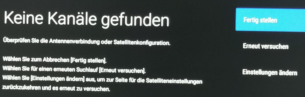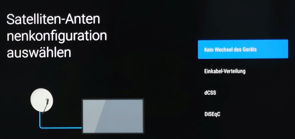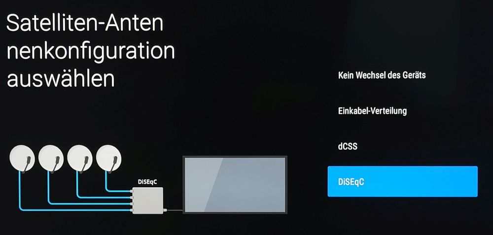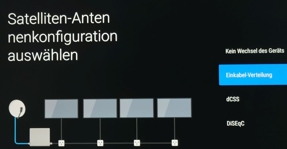 Der Sony X94J empfängt aber scheinbar - egal was ich versuche (Einkabelverteilung, Dcss, Disecq) - kein Signal!