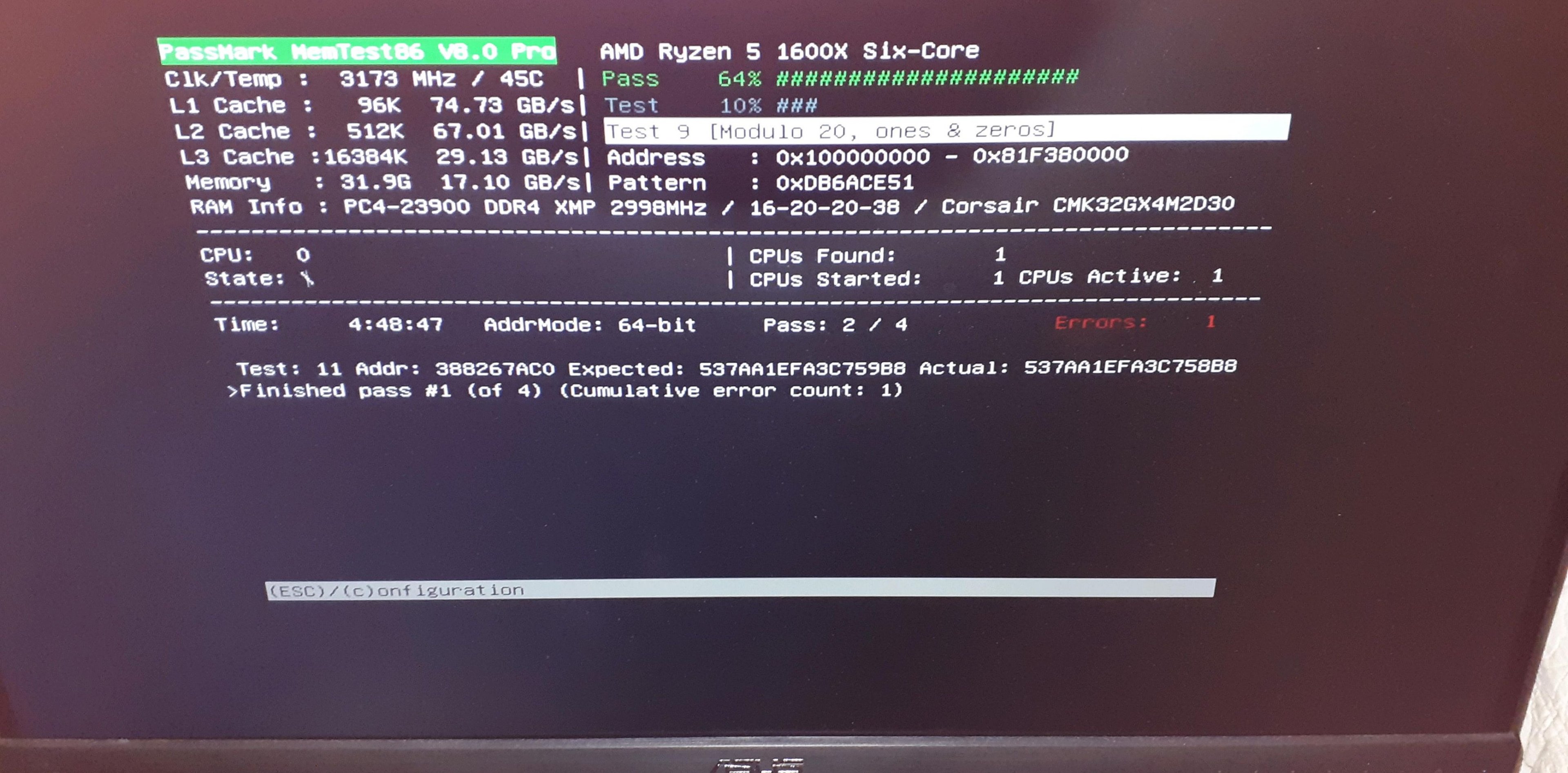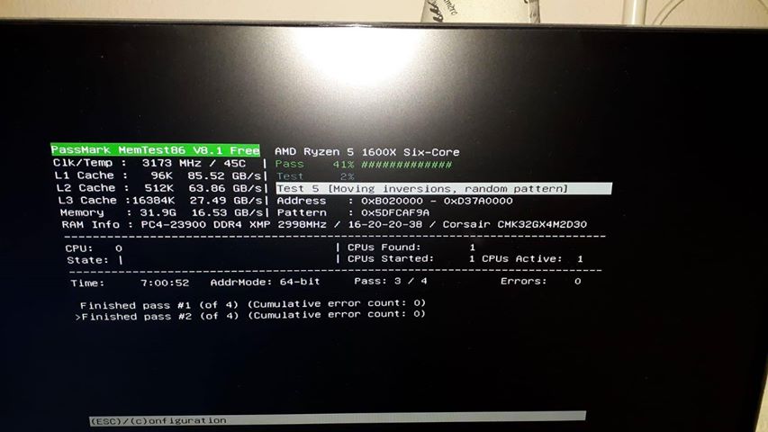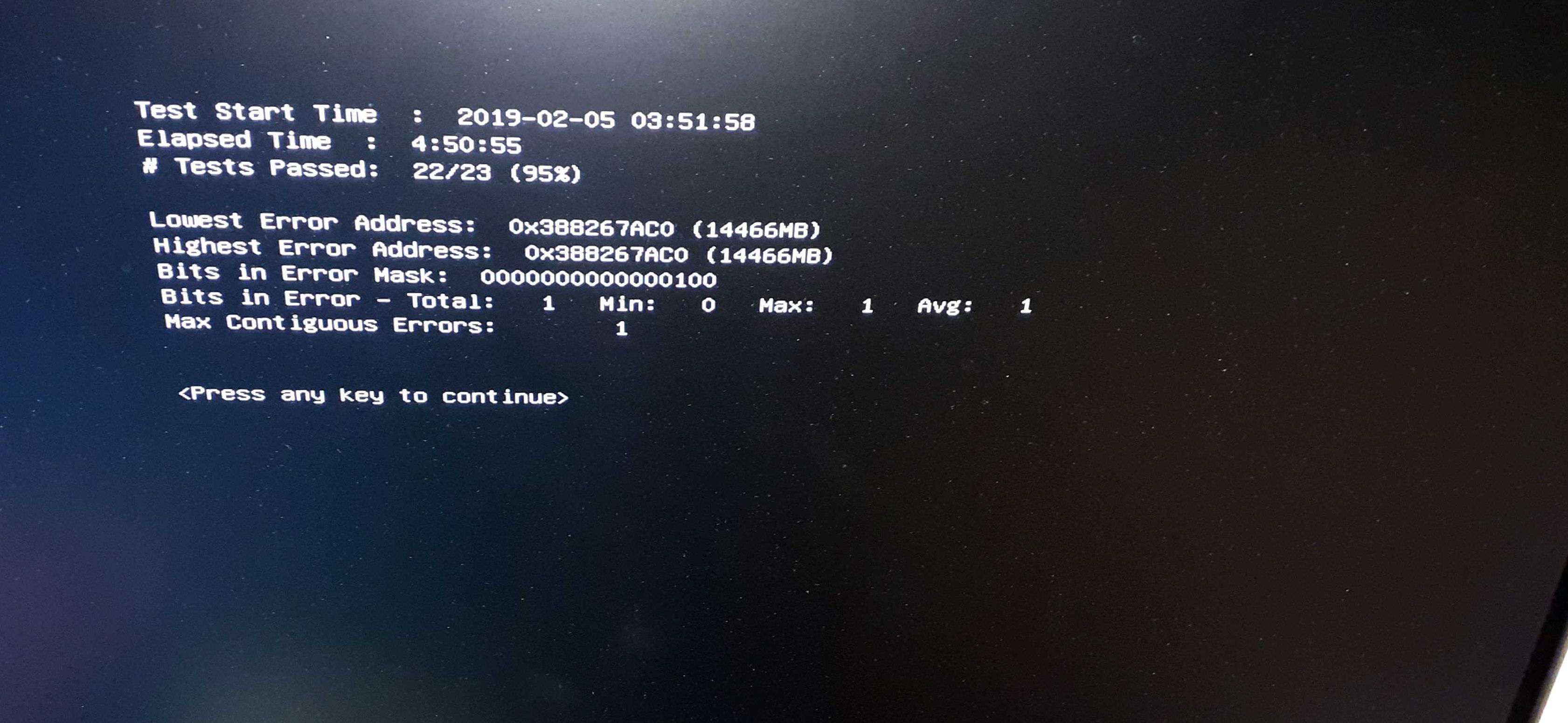 hatte mir speicher ersetzt da die vom jacob store defekt waren, diesmal bei amazon, bei mir war warhammer 2 einfach geschlossen worden nach 20min , hab dann mem test mal laufen lassen und dieses bild heute morgen bekommen, bitte um auswertung, kann man es irgendwie reparieren? ist das ein defekt? der erste riegel? beide?