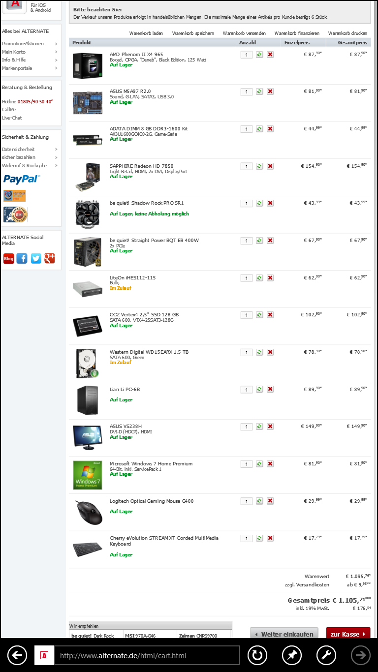 Und noch was, klar gibts bei x verschiedenen Onlinehändlern auch x verschiedene Preise, aber wir werden dann zum Alternate-shop fahren,