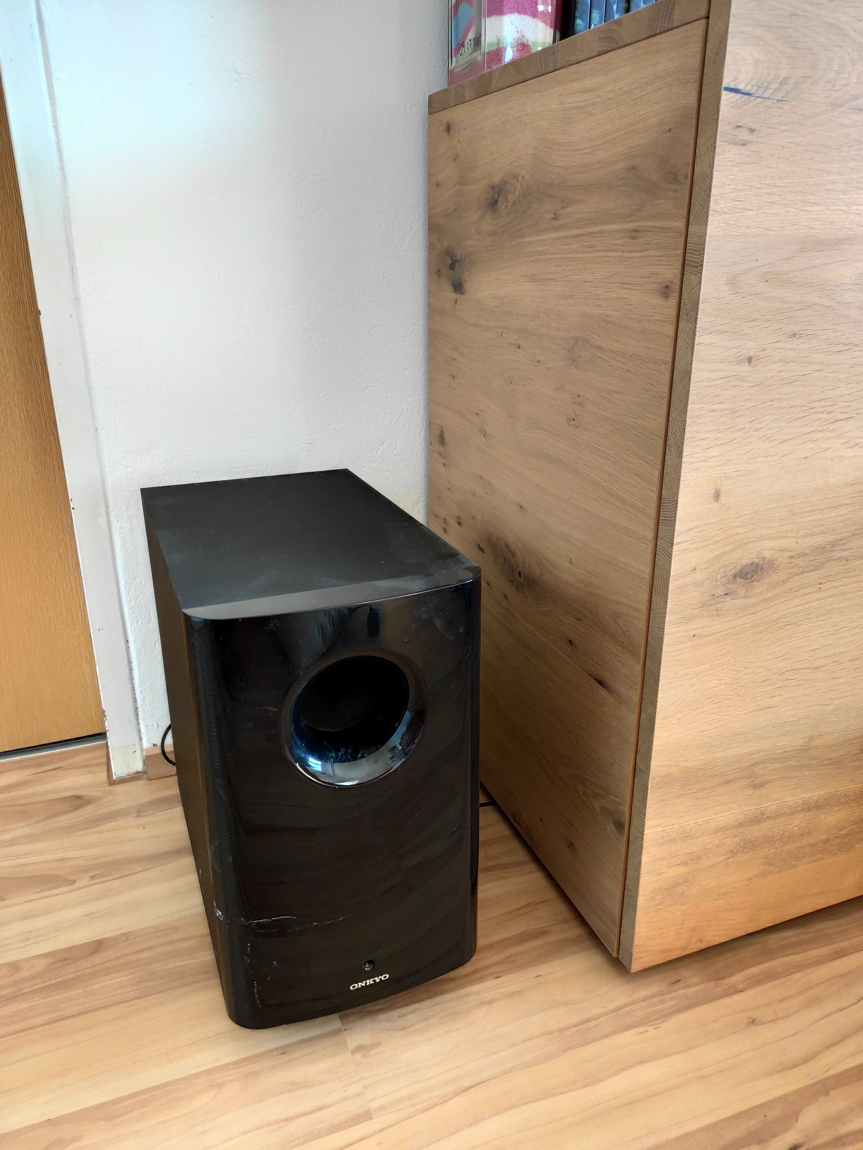 Mein Raum ist quadratisch mit ca 17m² und er wird wieder auf dem Boden gestellt wo auch schon der alte steht. Angeschlossen wird er an eine 5.1 Anlage an einem Onkyo HT-R693 Receiver.