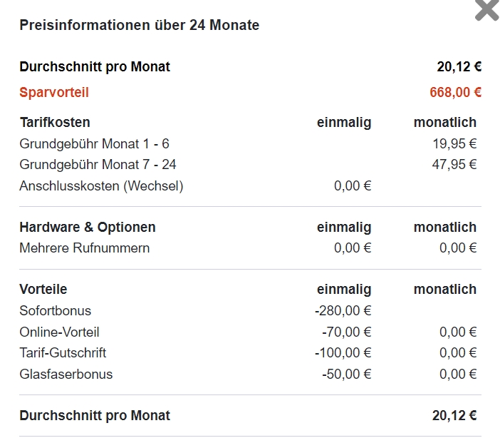 Bei Blau gelten die Postpaid-Preise nur in den ersten 24 Monaten. Klickt mal den Sternchentext an. Bei der Blau Allnet Plus heißt es: