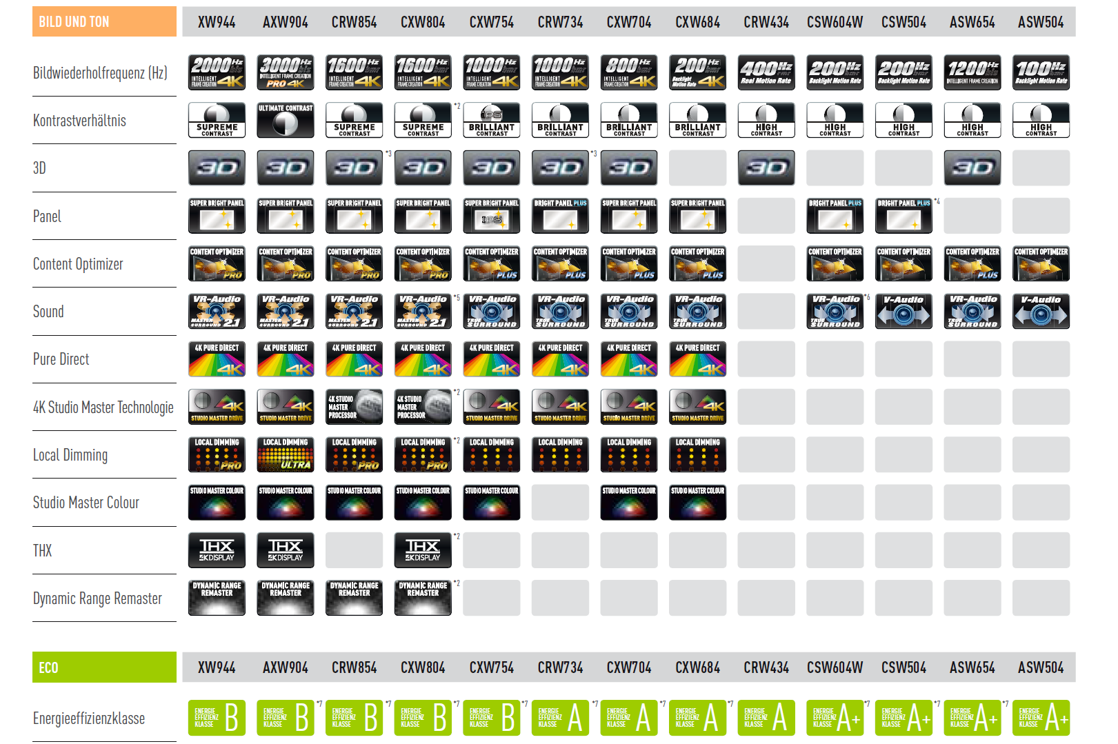 Hört doch auf von Local Dimming zu schreiben wenn ihr nicht mal hinschreibt wieviele Dimming- Zonen diese TVs überhaupt besitzen, selbst der CXW804 bietet nur 12 Zonen (2 Spalten 6 Zeilen). Der ASW804 hat wenigstens 32 Zonen, die 7xx reihe gerade mal 16 Zonen