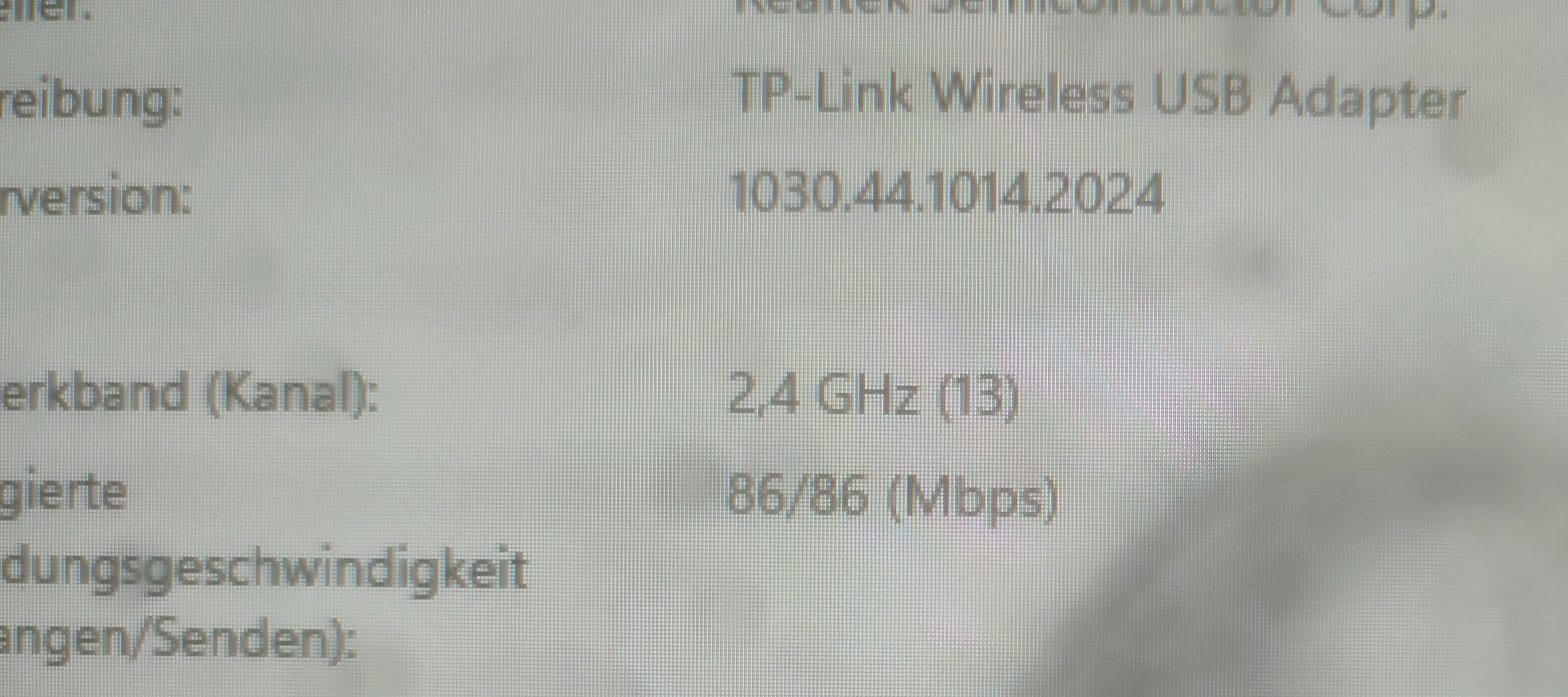 Der USB-WLAN-Adapter ist ein alter und damals schon günstiger TP-Link ohne Antenne.