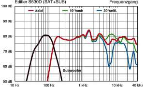Die Edifier S530D sind zwar im Übergangsbereich noch relativ gut abgestimmt (im Gegensatz zu div. Teufel & Co.), aber dafür brechen sie zwischen 200 und 600Hz ein und haben oberhalb von 1kHz div. Sprünge im Frequenzverlauf: