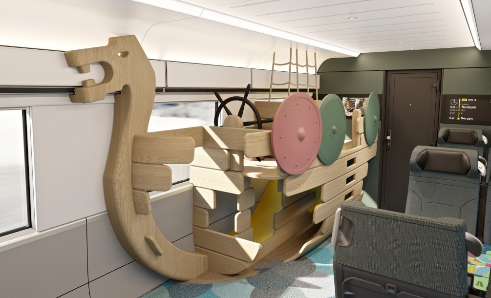 In norwegischen Zügen gibt es für Kinder einen Wagen mit Spielbereich. Den Zug liefert Stadler Rail.