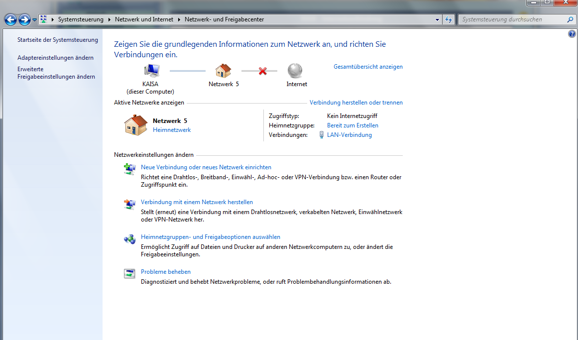 Dann habe ich angefangen, alle möglichen Sachen anzuklicken und zu verändern, bis dann irgendwann garnichts mehr ging. Irgendwie habe ich meinen PC aus dem Netzwerk abgemeldet und wenn ich die automatische Problembehandlung laufen lasse, bekomme ich immer einen Fehler, das irgendetwas mit den LAN-Einstellungen nicht richtig ist und dieser Fehler auch nicht behoben werden konnte.