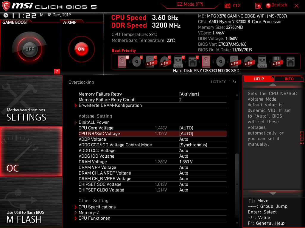 MSI MPG X570 GAMING EDGE WIFI X570 (neueste Bios Version)