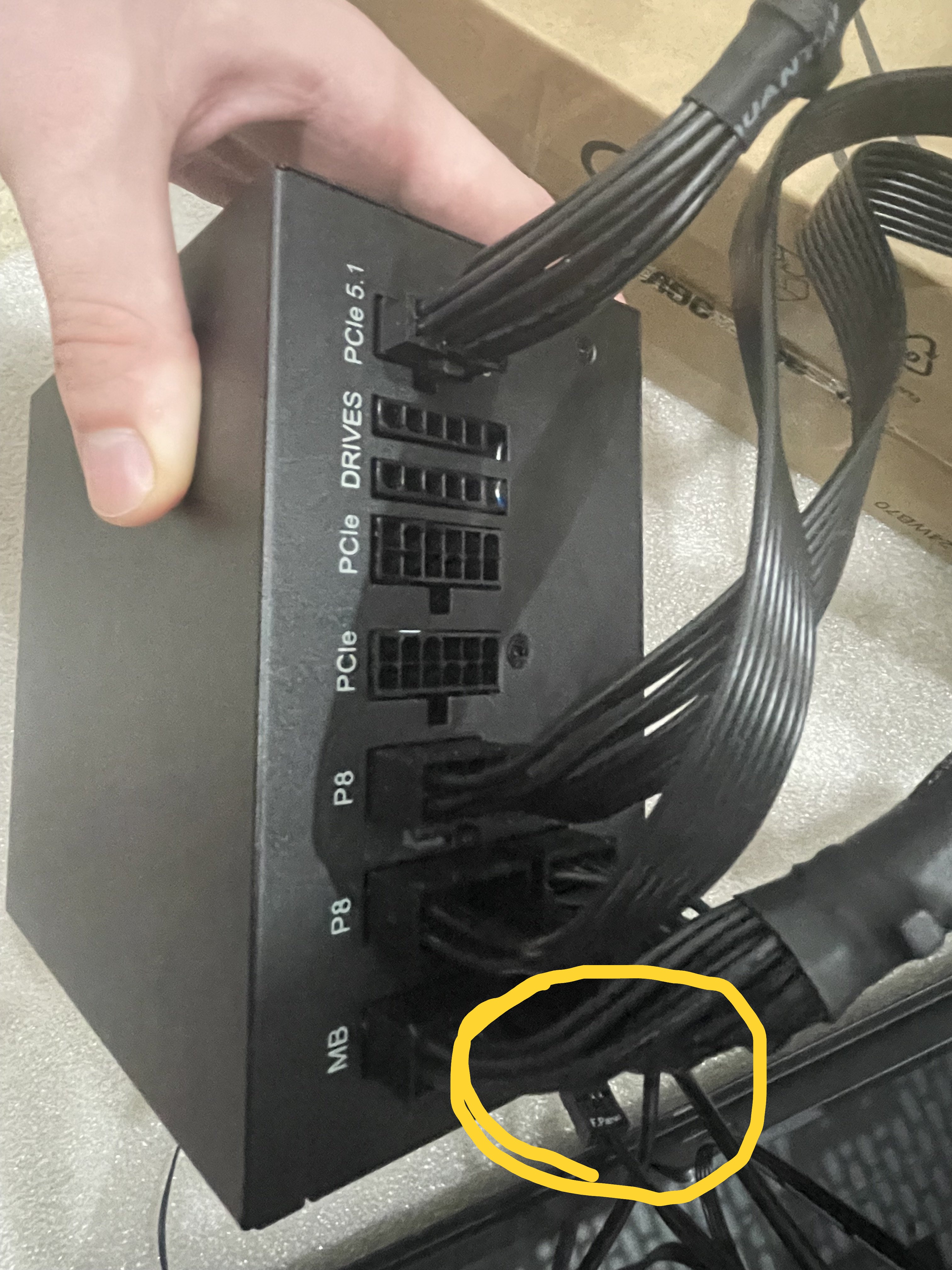 Kabel 24 Pin Mainbord und 8 Pin CPU Stromversorgungans Board anschließen.