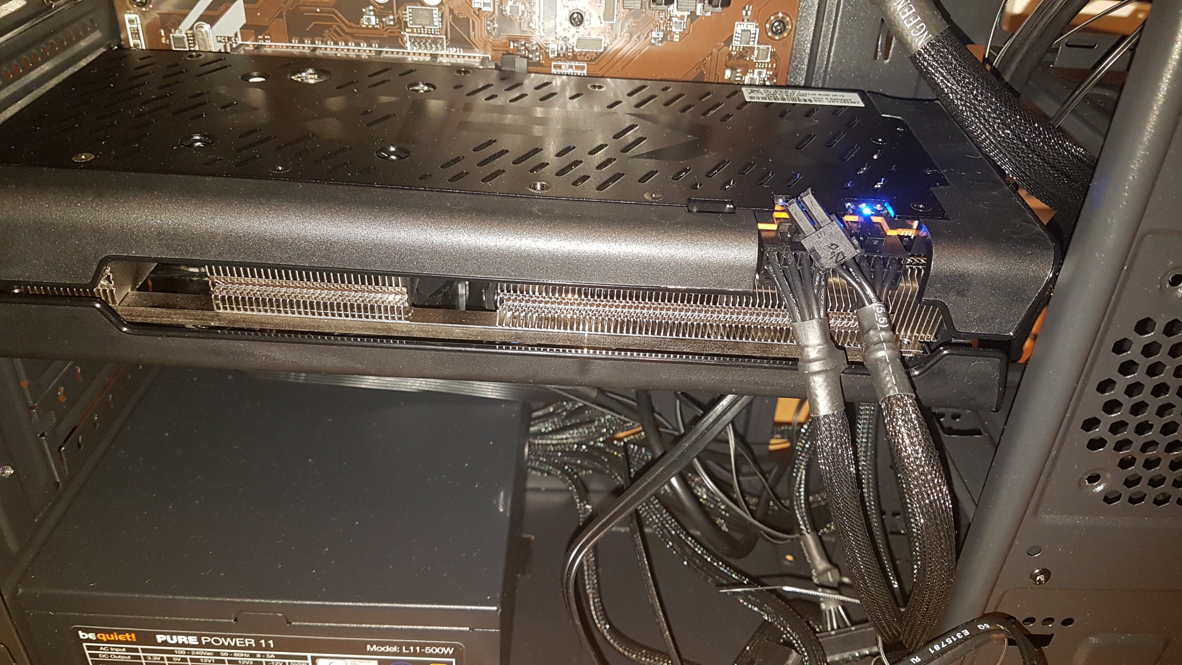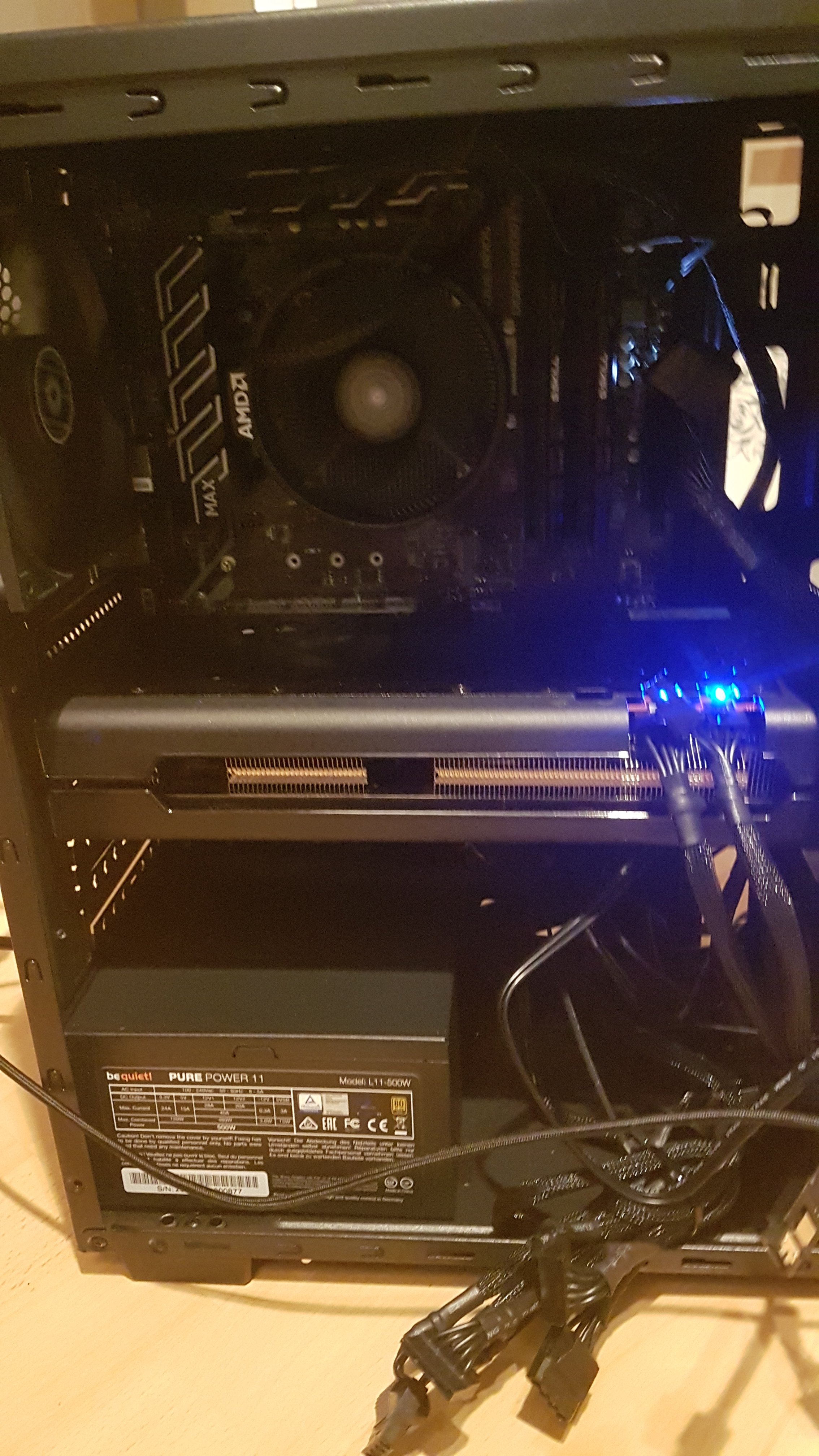 Dann habe ich meine GPU (R9 280) eingebaut. Dabei ist das SATA Kabel der SSD abgegangen. Bin dann matürlich nur bis ins Bios gekommen, wo es keine Loop gab. SSD wieder angeschlossen und wieder der gleiche Spaß.
