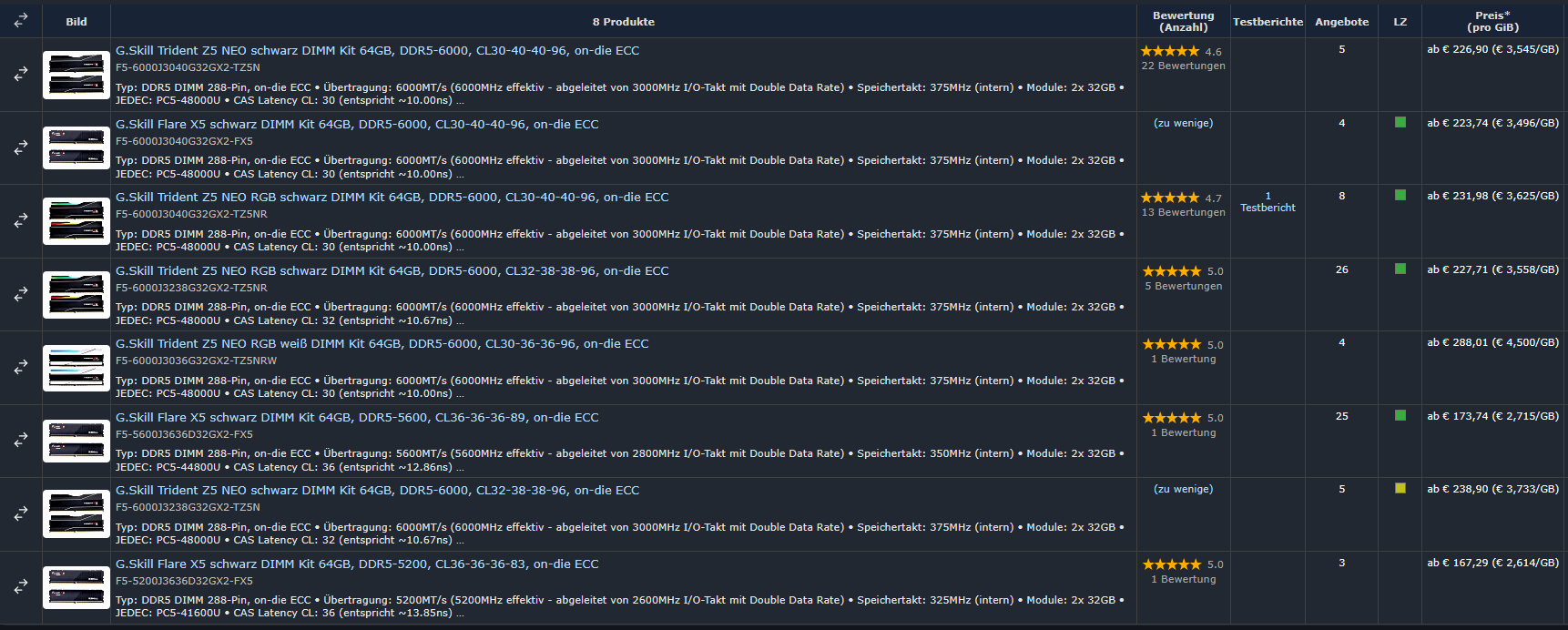 @LukS sind doch nur 17 verschiedene Kits mit 32GB 6000 CL30-36-36-76 oder 5 64GB 6000 CL30-36-36-76
