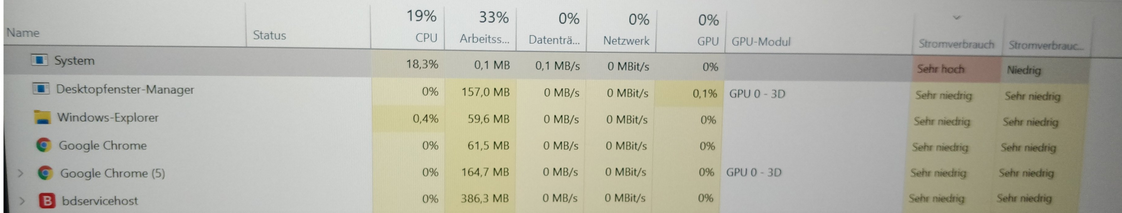 Die Helligkeit ist bei ca 33%. Es laufen eigentlich auch kaum irgendwelche zusätzlichen Programme.
