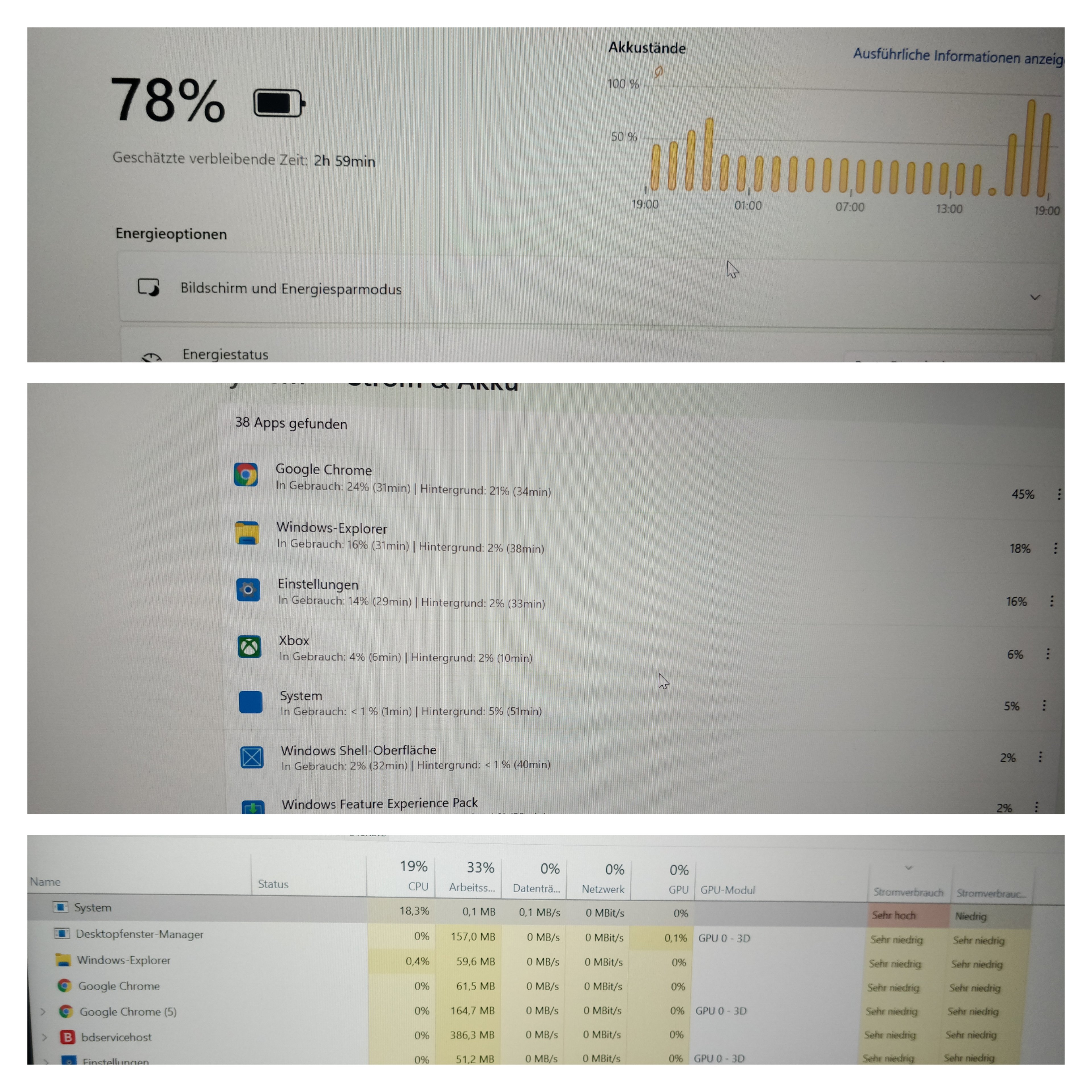 Die Energieanzeige (siehe Bild) zeigt bei 78% knapp 3h verbleibende Zeit an. Laut Hersteller und in Testberichten sollte diese Zeit ja schon höher liegen.