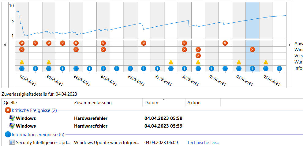 -Regelmäßiger Eintrag im Zuverlässigkeitsverlauf "Hardwarefehler -