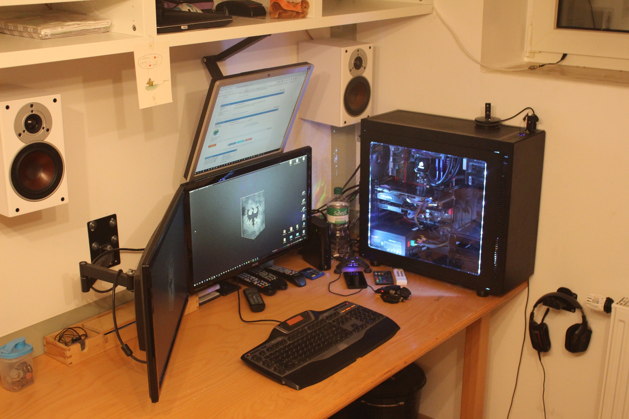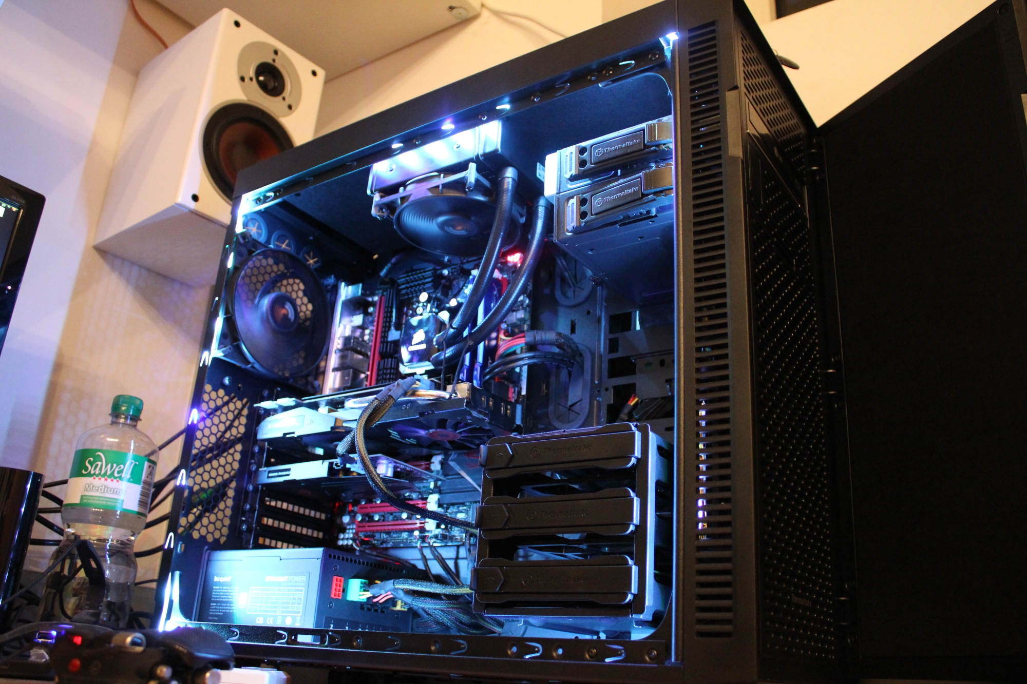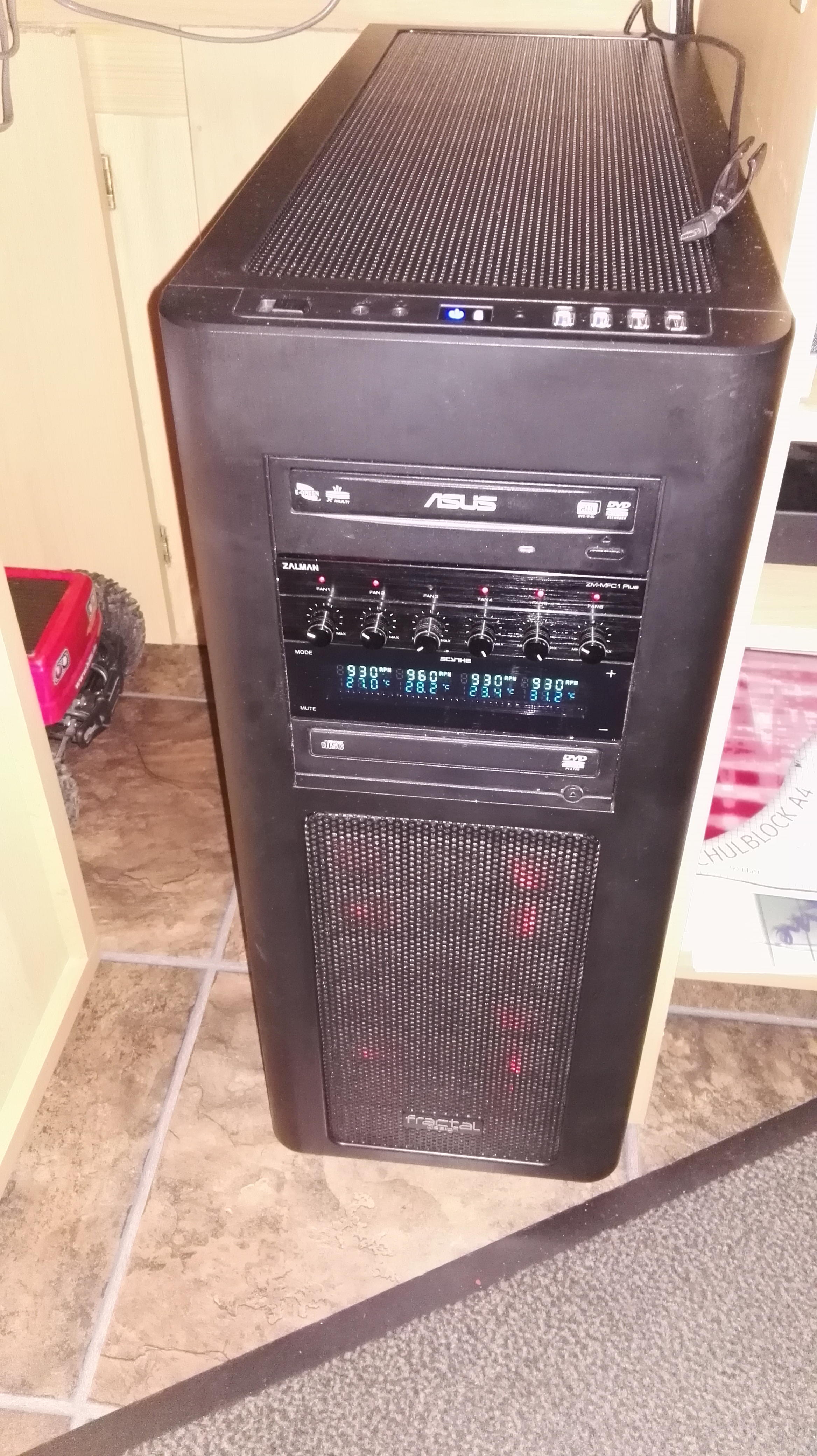 Ich habe ein Thermaltake Suppressor F51. Das ist irgendwo zwischen einem Midi-Tower und einem Big-Tower und hat ein großes Sichtfenster. Beleuchtung muss aber nachträglich eingebaut werden