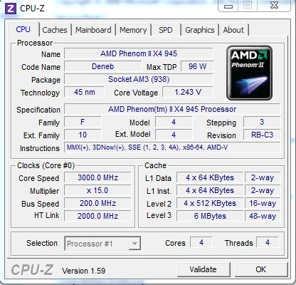 AMD Phenom II x4 945 - C3 (CPU zeigt 96w tdp an, das kann eigentlich nicht sein, oder?) -- siehe Screen! (boxed Kühler)