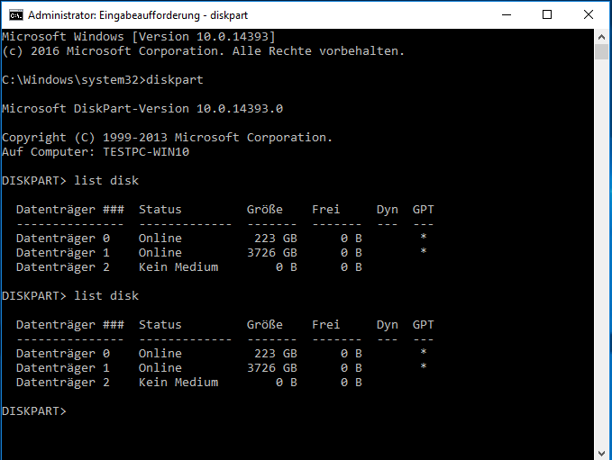 öffne ich Diskpart ist die SSD Laufwerk 0