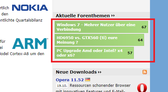 Desweiteren muss die ätzende grüne Farbe im neuen Bereich "Aktuelle Forenthemen" schnellstens ersetzt werden, da bekommt man ja Augenkrebs. Zudem ist die Schrift fast unleserlich! Helles grün und weiße Schrift bietet einfach keinen guten Kontrast!