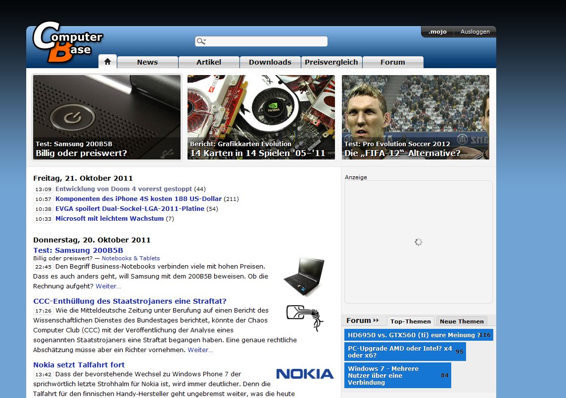 Hier mal die Startseite, so wie sie sich für mich präsentiert (win7 64, Opera 10.63 [noch])
