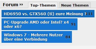 Ok, wir haben die Nützlichkeit des "Top-Themen"-Tabs falsch eingeschätzt. Das Herausstellen dieser Themen tut ihnen nicht unbedingt gut und führt zudem dazu, dass Themen mit ohnehin vielen Antworten noch mehr Antworten erhalten (und somit der Platz in den "Top-Themen" verfestigt wird).