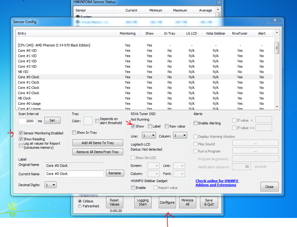 Ich lasse das OSD immer mit Aferburner & HW info 64 laufen,