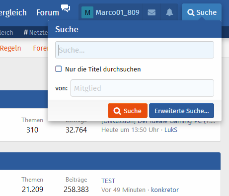 Was den Punkt mit der individialisierten Suche angeht, aheb ich mal einen (schnellen) Blick drauf geworfen. Kann ich wirklich nur das "unterste" Unterforum beobachten? Das wird dann ein ziemlicher Aufwand, dass alles einzustellen. Oder kann ich etwa das Forum Unterhaltungselektronik und vernetztes Leben komplett beobachten?
