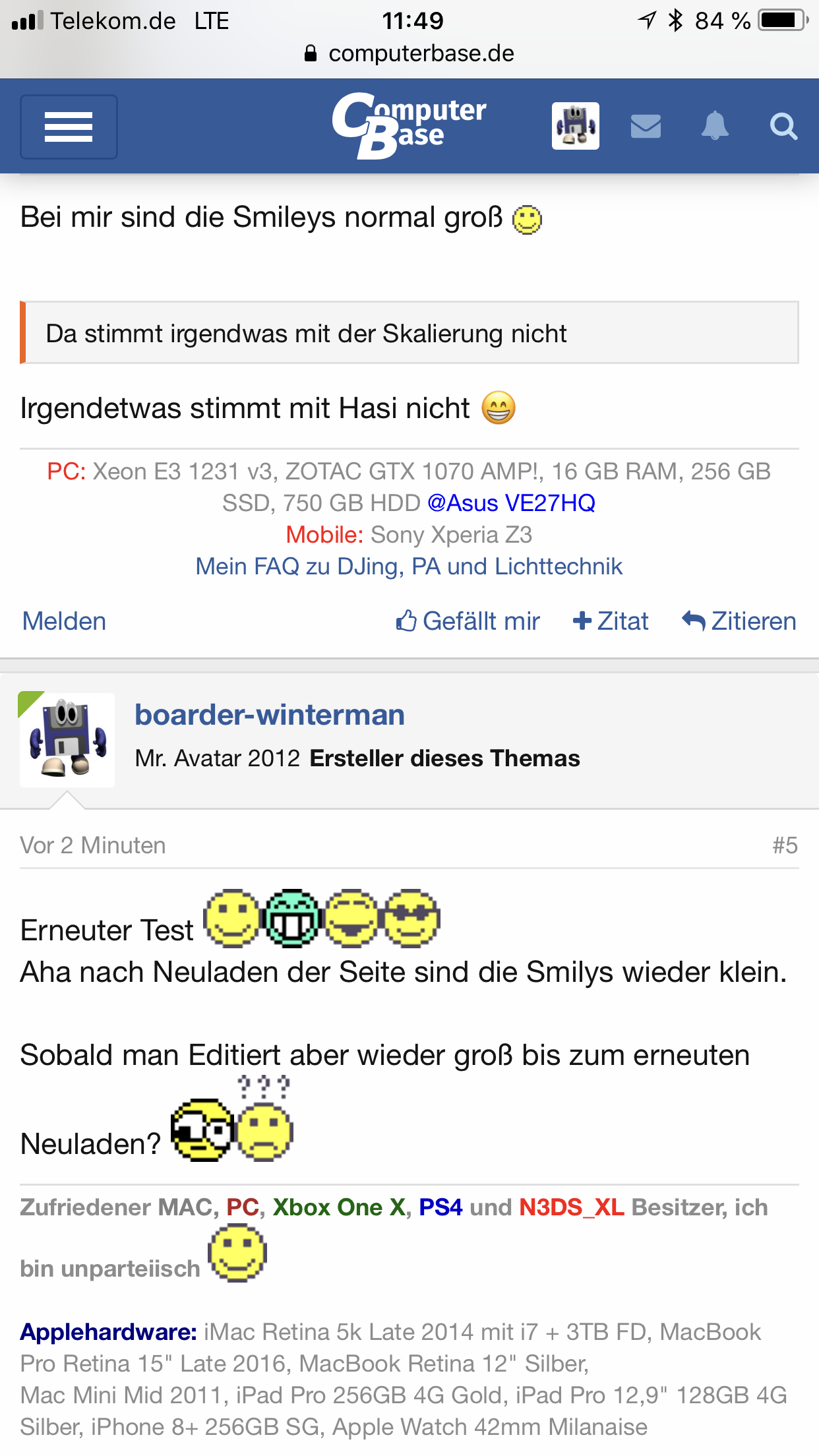 Bei Posts im mobilen Layout sind die Smilys riesig im Vergleich zu anderen Posts.
