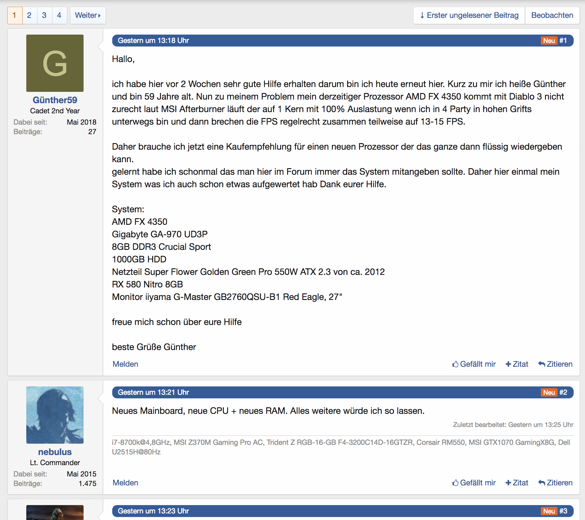 Ansonsten gefällt mir der Stil generell nicht ganz so gut wie im Alten Forum, aber ich konnte das jetzt nicht an einem konkreten Beispiel festmachen und ist wahrscheinlich einfach Gewöhnungssache.