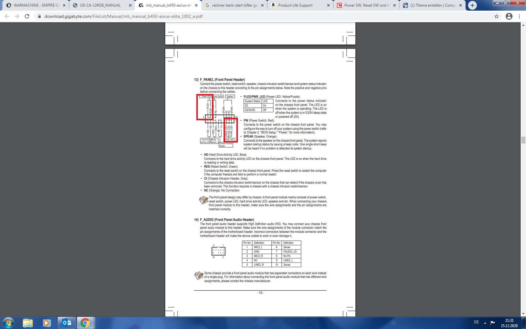 PS eine weitere Frage wäre auf dem Mainboard Gigabyte Aorus B450 Elite sind bei den Steckplätzen einmal pled+ / Pled- anschluss und einmal pwr led+ , pwr led, pwr led- wo stecke ich diese nun an habe vorher noch nie gesehen das das Mainboard 2x den power anschluss hat.