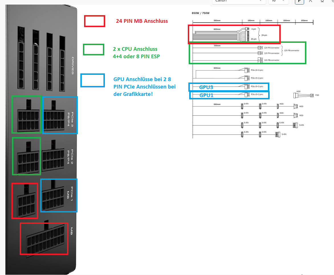 Am Netzteil stecken auch alle stecker drin so wie sie gehören, hab ich auch nochmal alles neu gemacht…