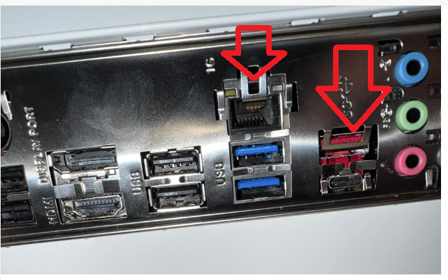 Kontrolle des IO Shields ob keine Klammer versehentlich beim Einbau in einen der Anschlüsse gerutscht ist: