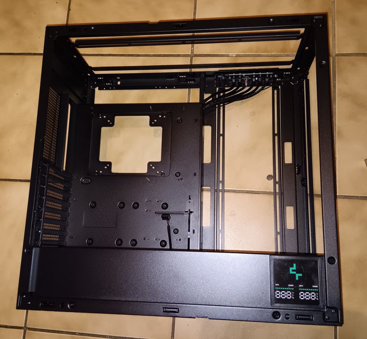 Ich habe das Gehäuse mal auf das Zweikammer System umgebaut damit das Netzteil nach hinten verschwindet und habe nun dieses Gestell vor mir stehen: