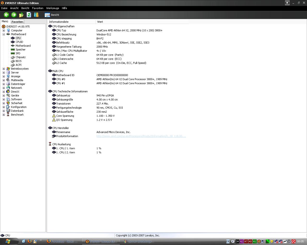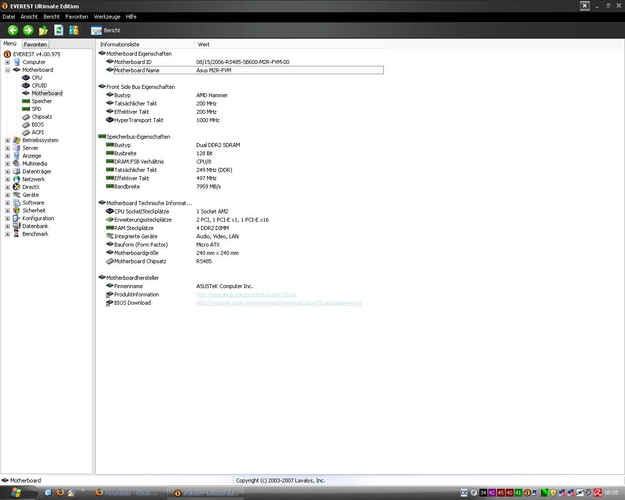 da mein Mainboard jetzt ein dummes Bios hat will ich es jetzt tauschen. Ich hab nen komplett PC von Fujitsu Siemens. Das jetztige Mainboard lautet so (Asus M2R-FVM). DualCore AMD Athlon 64 X2, 2000 MHz (10 x 200) 3800+ Hab nen paar BBilder geuppt von Everest. Das Mainboard sollte fast gleich sein wie das was ich habe.