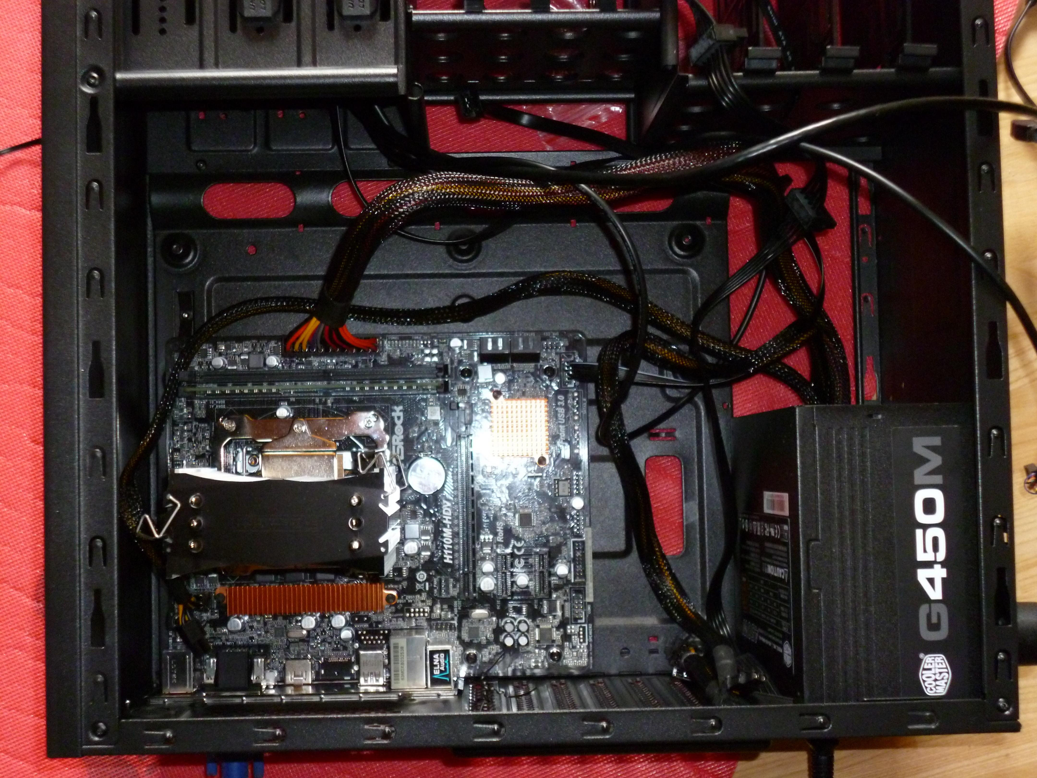 Beim Anschalten rühren sich aber nur Gehäuse-, CPU- und Netzteillüfter. Die LEDs am Netzwerkanschluss und an der Tastatur leuchten nicht und ein Bild bekomme ich auch nicht (mit HDMI, VGA und zwei Monitoren getestet).