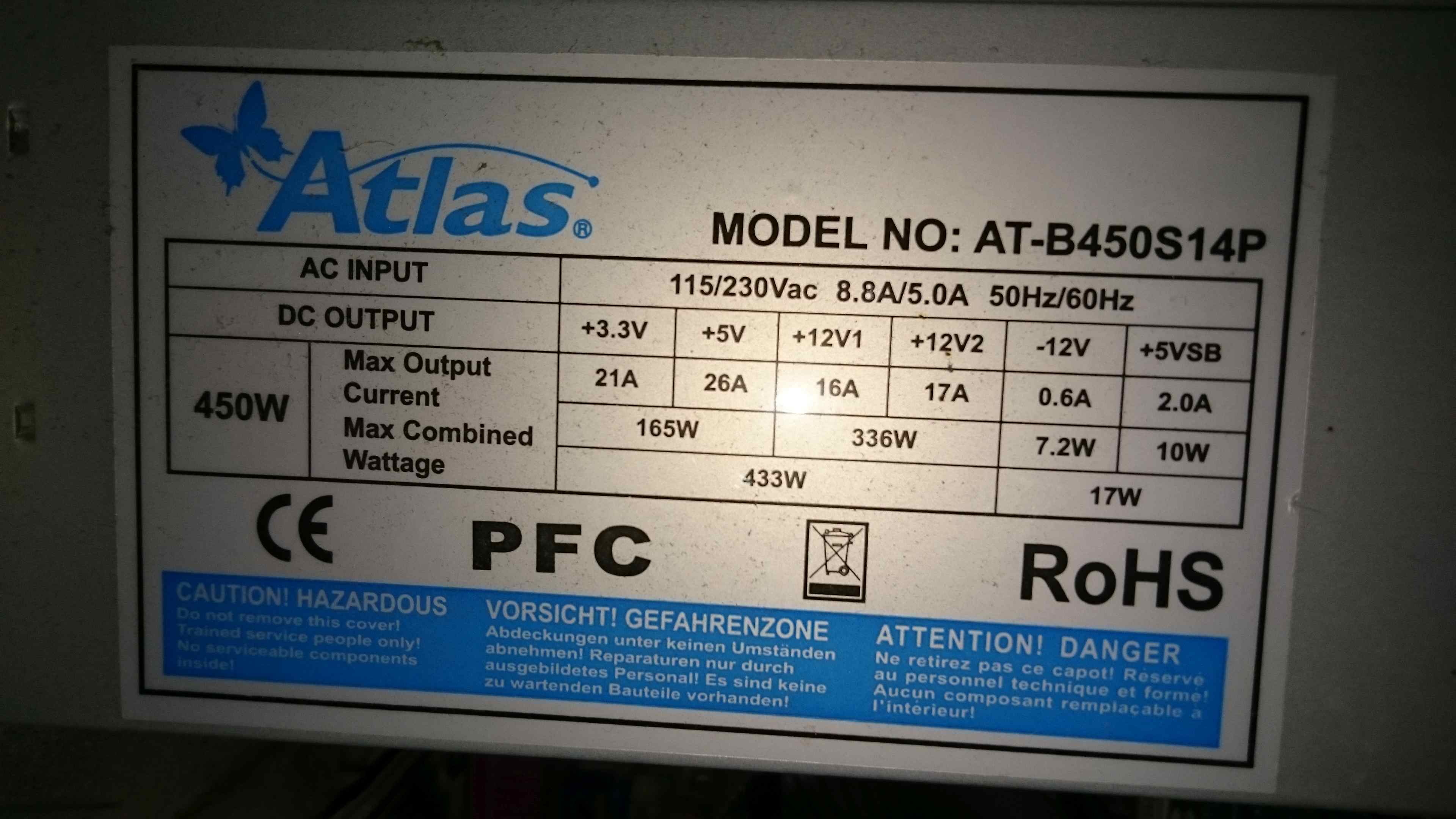 Das NT scheint mir sehr alt zu sein...die Leistung auf 12V ist sehr mau...sollte zwar eigentlich reichen, aber vielleicht bringt es die angegebene Leistung schon nicht mehr.